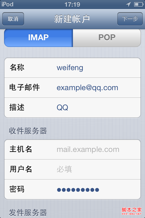然後輸入郵箱的基本信息,包括自己郵箱的賬號密碼。
