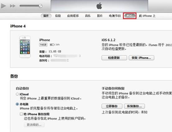 或使用 iTunes 的同步功能,將視頻圖片備份到 iTunes 中,恢復時使用 iTunes 還原備份即可。