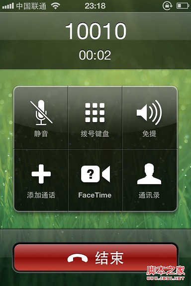 5.通話過程中,用戶可通過屏幕中央的選項,進行例如數字鍵入、FaceTime、免提等操作。若要結束通話,則輕按屏幕上“結束”按鈕。