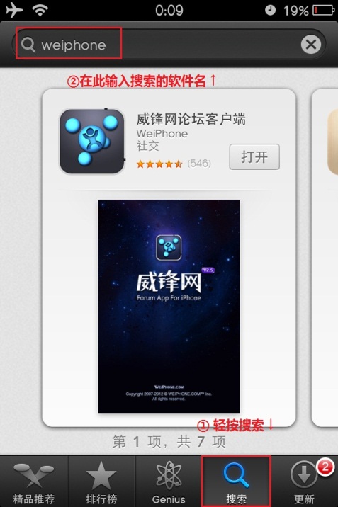 若想搜索並下載一個應用,您首先需要輕按“搜索”,輕按搜索欄並輸入一個或多個單詞,然後再次輕按“搜索”。之後點擊應用,輕按價格(或輕按“免費”),然後輕按“馬上購買”。