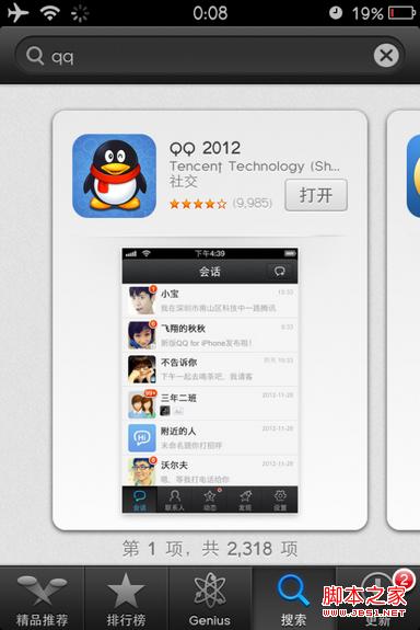 在結果中找到 QQ 2012,點擊進入。輕按 QQ 圖標下方的“免費”,然後輕按“馬上購買”即可。