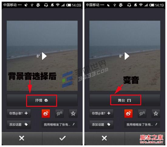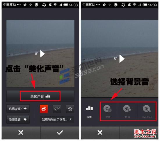 3)圖片跟錄音弄好後,可以在下圖的界面進行設置,點擊“美化聲音”進入,可以選擇“背景音”及“給現有的錄音進行”變音。