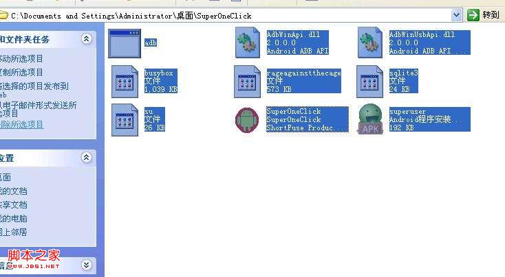 再說正事。和大多數人一樣,我拿到飛機後就想到用一鍵ROOT工具軟件,以為安裝一下就能獲得超級用戶權限,但沒有那麼容易的事。只好按部就班的來。下面我們來看看ROOT方法,其實也非常簡單。下載必要的工具軟件SuperOneClick,在電腦上解壓後一般是一個文件夾,裡面有很多文件,我們使用的是兩個文件,一個是SuperOneClick,電腦上用的,綠色軟件;另一個是手機端的安裝軟件,大家看到那個SUPERUSER.APK文件就是,記得安裝後不要打開它,放那兒就行了。