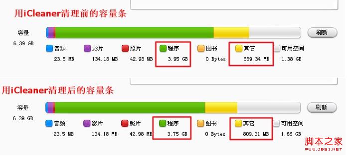 當然你也可連接同步助手或者iTunes查看容量分布,看看清理效果如何。