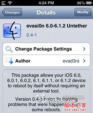 Evasi0n 完美越獄工具繼續更新,今日凌晨已更新至 1.5 版本。新版本提升了設備的啟動時間。在上一個版本的更新中,Evasi0n 已經添加對 iOS 6.1.2 完美越獄的支持,大家可以放心升級。與此同時,Evad3rs 團隊還對 evasi0n 完美越獄安裝包進行了更新,如果你越獄後遇到啟動時間的問題,你可到 Cydia 下載 0.4-1 修復補丁。