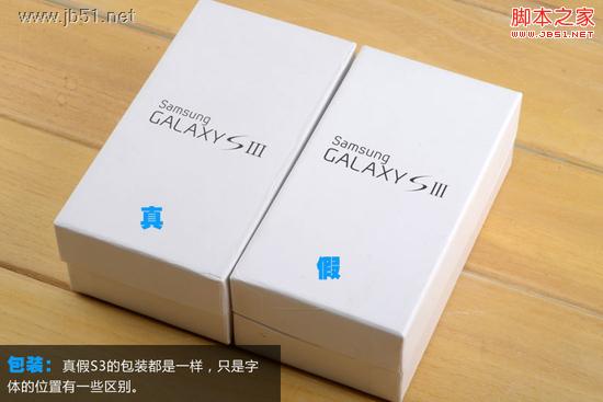 包裝:真假S3的包裝都是一樣,只是字體的位置有一些區別。