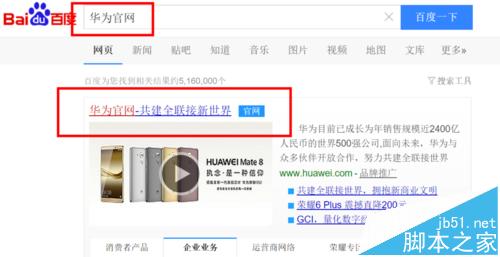 1/在百度裡面搜索“華為官網”然後點擊華為官網鏈接