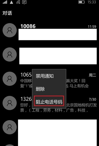 當你開啟騷擾攔截後,進入到通話歷史記錄或者短信對話界面中,長按想要添加的號碼或者信息,彈出的菜單中就能選擇“阻止來電”與"阻止消息",很簡單是不是。