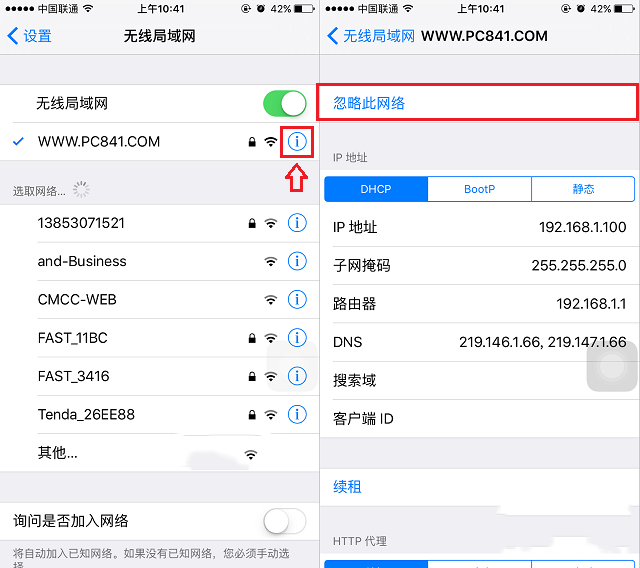 如果其它手機都能連接Wifi,並且能上網,唯獨自己的手機上不了,這種情況多數是手機設置問題,如設置了不正確的靜態IP或者DNS等,對於這種情況,可以嘗試忽略網絡,之後再次輸入Wifi密碼連接解決。