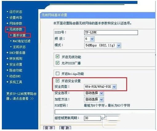 勾選“ 開啟安全設置”,安全類型選擇“WPA-PSK/WPA2-PSK”,並設置一個強密碼。