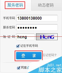 【1】輸入“手機號碼和服務密碼”後填寫驗證碼點擊“登錄”即可。