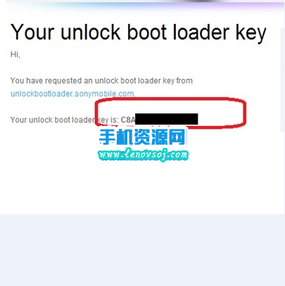 7:登錄你剛剛填上去的郵箱,現在索尼應該已經把解鎖碼發到你的郵箱裡了,打開郵件瞧瞧,如下圖,紅色方框中就是解鎖碼: