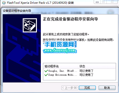 5:然後直到安裝完成就可以了,直到索尼M35H驅動下載安裝教程手機USB驅動下載安裝完成
