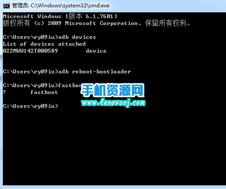 3:然後輸入 adb reboot-bootloader,手機將重啟並進入一個白色屏幕,並顯示安卓機器人表示成功進入bootloader模式