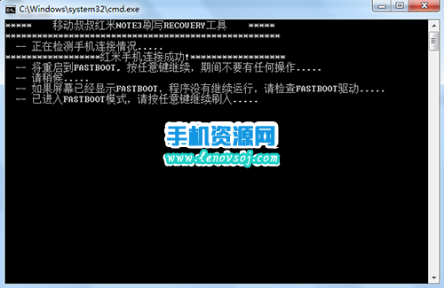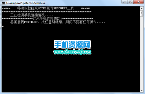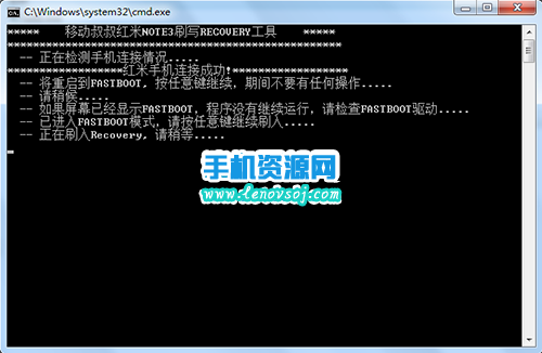 3:然後直接按回車鍵,接著軟件識別出手機就會自動開始刷入recovery了。