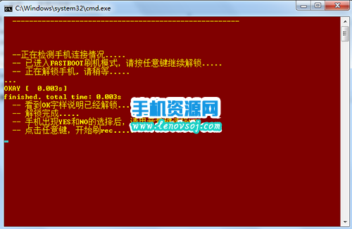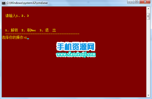 2:然後把之前下載下來的recovery工具包在電腦上進行解壓,解壓出來一個文件夾,然後在文件夾裡找到【解鎖+刷rec.bat】文件直接雙擊打開運行,然後輸入1並按回車鍵,軟件就會自動開始進行解鎖了,解鎖完成之後會提示你按任意鍵刷recovery了。