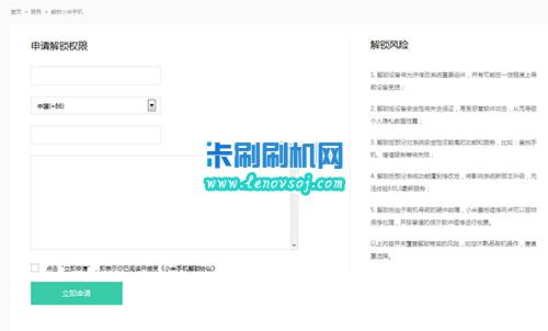 2:然後到這個網站上 http://www.miui.com/unlock/ 申請解鎖,然後要填寫 姓名、手機號、申請理由 並勾選《小米手機解鎖協議》,填寫手機接收到的驗證碼
