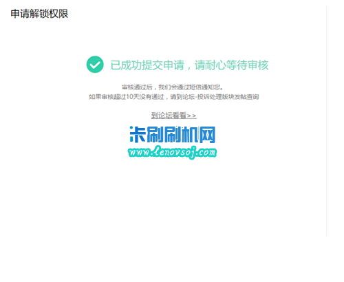 3:申請提交成功,等候審核(一般審核比較快,幾乎申請就能通過,節假日時間會比較長),申請解鎖通過後,就得真的去解鎖了,接下來,你就得用電腦進行紅米手機3S/3X的BL解鎖。