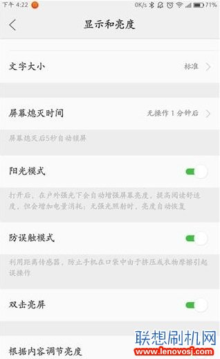 第三步:同時也可以在顯示和亮度調節選項頁面繼續下拉至最底部,打開【根據內容調節亮度】選項: