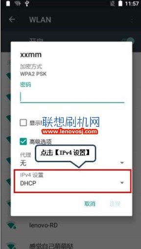 3: 點擊要連接的無線網絡,勾選“高級選項”,點擊“IPv4設置”,如下圖所示;