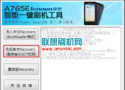 2,下載好聯想A765E刷回官方recovery的工具,這個是一鍵刷入工具, 點擊下載>>>>> ,下載好了解壓,在電腦上備用。
