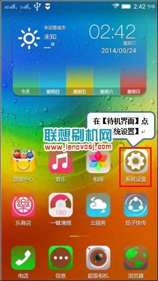 第一步:進入手機的【待機界面】點擊【系統設置】,如下所示:
