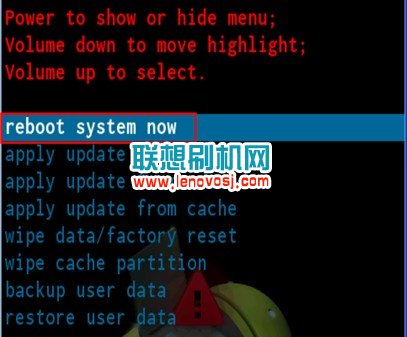 3、再選取Wipe Cache Partition確定一次,最後選擇第一項reboot system now 重啟手機即可解開屏幕密碼鎖了:如下圖所示: