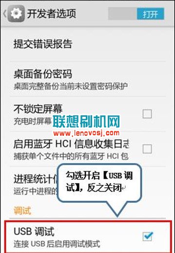 3、打開開發者選項後,再點擊“USB調試”即可開啟USB調試,如下圖所示: