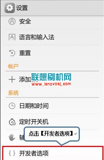 2、找到“開發者選項”然後點擊一下,如下圖所示: