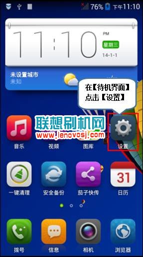 1、進入聯想A328T【待機界面】點擊【設置】,如下圖所示: