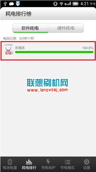 3、 較為耗電的程序或服務,可通過聯想A850自帶的程序【樂省電】查看電量消耗情況知曉,如下圖所示。