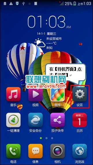 1. 在【待機界面】點擊【設置】,如圖所示;