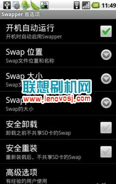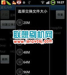 1,先把您的手機ROOT,下載一鍵ROOT工具,先把您手機ROOT了,然後再安裝虛擬內存軟件;點擊下載>>>>>,安裝後運行軟件,你會看到軟件界面如下,然後按“Menu”鍵進入“Configuration”(配置),在下拉菜單中選擇“Swap place(位置)”選項,為新分區起個好記的名字即可。
