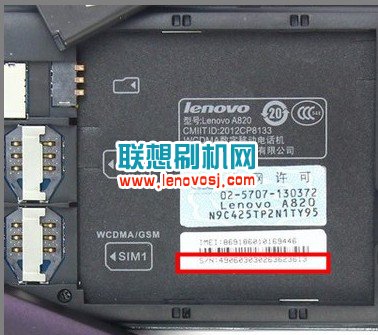 如下圖所示,就是聯想A820的SN碼,在條形碼的下方顯示的!