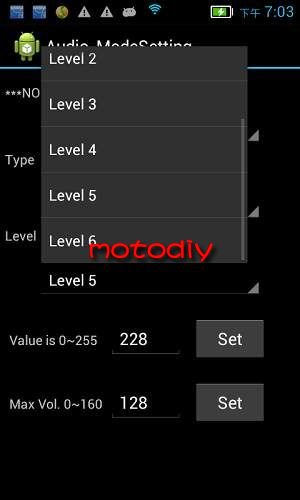 點第3行“level 0”右邊的小三角,選擇為“level 6”(即最大一級音量,0 為靜音,1-6 為可調音量級)