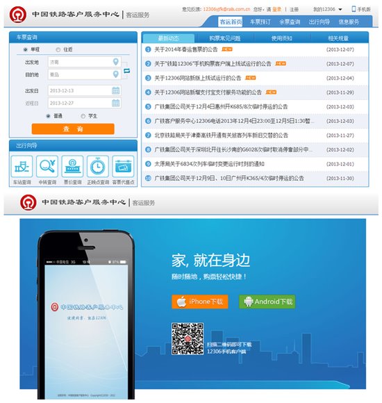 鐵路訂票網站12306手機客戶端首日超20萬人下載“搶票”