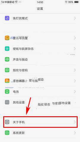 1)先打開手機的【設置】,進入設置菜單後滑到最底部,點擊【關於手機】選項。(如下圖)