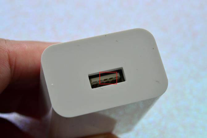 魅族PRO 7 Plus的充電器USB的接口采用USB 3.0接口設計,可以看到這個接口要比普通的USB接口多了2個金屬觸點,這兩個觸點主要是用來傳輸快充的信號,這樣設計在不少低壓快充的充電器上都有。