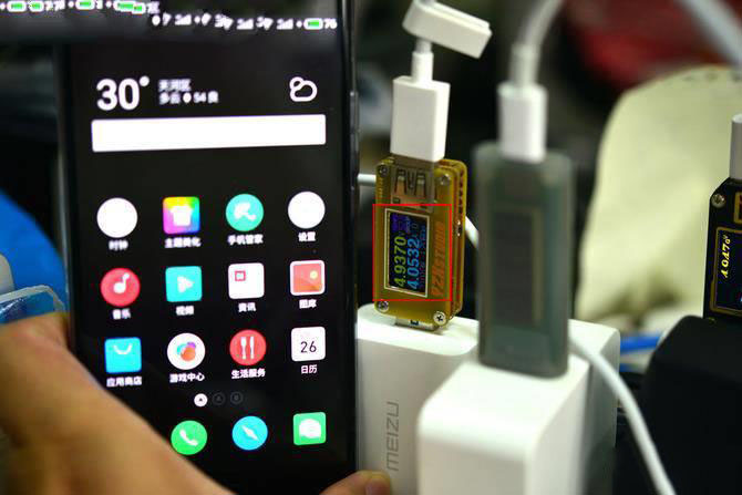 實際測試中,魅族PRO 7的充電電壓在4.7-4.9v之間徘徊,初始充電電流已經能達到了4.9V,實際功率也接近24W,而之前采用8V/3A的快充方案峰值功率最高也只能達到23W左右。可見這個低壓快充功率更大,效率更高。