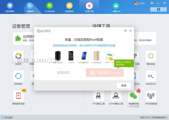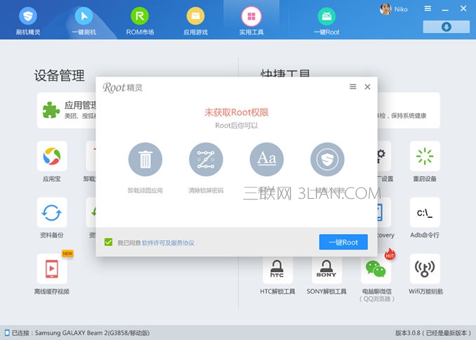 2). 打開刷機精靈,選擇“實用工具” 下的 “一鍵ROOT”