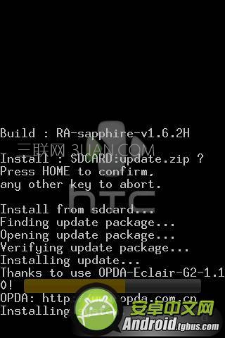 選擇update.zip後,會彈出如下圖提示。然後再按下開關鍵,就開始自動安裝系統刷機了。 安卓手機自己怎麼刷機