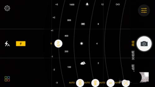 金立S10攝像模式中有一個高級模式,可以調節快門速度、白平衡、感光度、曝光補償以及調焦參數,堪比專業單反。