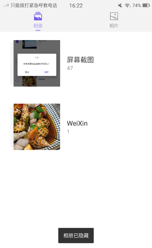 1、打開相冊--在列表界面長按需要隱藏的相冊