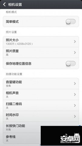 小米手機3相機恢復出廠設置後就會停留在簡單模式,下面就是簡單模式的設置,基本上用起來沒問題,大家可以參考一下。