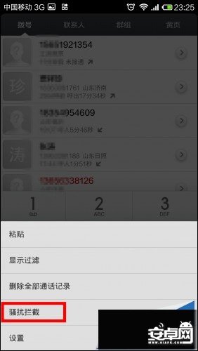 1、打開撥號界面——騷擾攔截