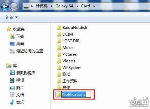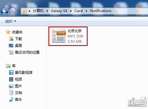 3. 將想要設置為短信鈴聲的歌曲復制到【Notifications】文件夾中。