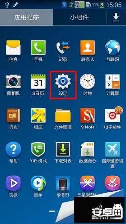 1、在待機頁面下,點擊【應用程序】,點擊【設定】;