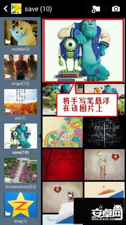 6、將手寫筆懸浮在一張圖片上方,出現浮窗後按下SPen按鈕;