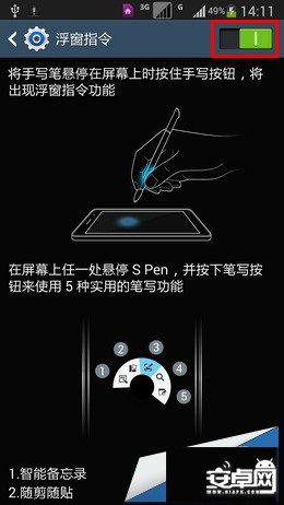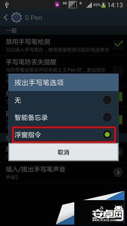 此外,我們還可以通過設置三星Note3的手寫筆,也可快速啟動浮窗指令,具體操作方法見下:
