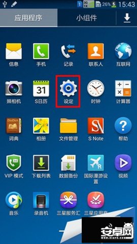 1、在待機屏幕上,點擊【應用程序】,滑動屏幕點擊【設定】;